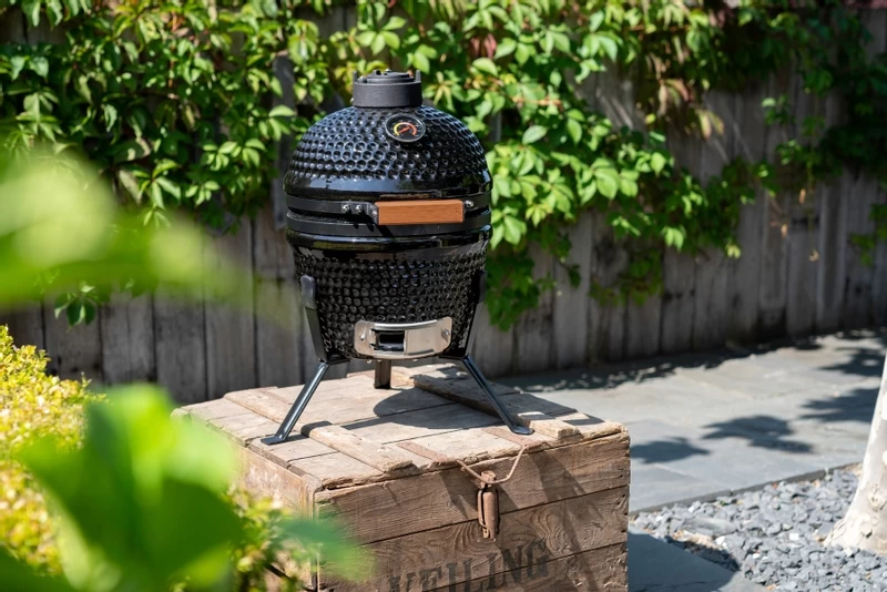 Deze 13 inch Kamado BBQ is perfect voor de beginnende barbecueër! De complete keramische barbecue is vriendelijk geprijsd en dat maakt hem ideaal om uit te proberen of zo’n keramische barbecue eigenlijk wel iets voor jou is. Het kookoppervlak heeft een diameter van 27 cm en is daarmee geschikt om 4 heerlijke hamburgers per keer te bereiden. Door zijn compacte formaat is hij ook zeer geschikt voor een kleine tuin of een balkon. Het keramische materiaal zorgt voor optimale isolatie waardoor warmte goed in de barbecue blijft. De Kamado BBQ plaats je gewoon op een verhoging of een daarvoor gemaakte werktafel, zodat je kunt grillen op de ideale werkhoogte.