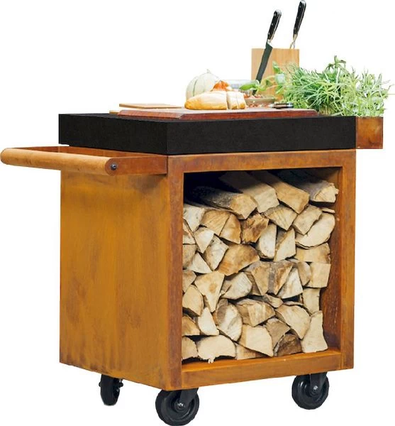 De extra bergruimte aan de onderkant van de OFYR Mise en Place Table 65 PRO is perfect om hout op te slaan. Dit is niet alleen praktisch, maar hierdoor verandert de werktafel ook als een ware eyecatcher in je tuin.