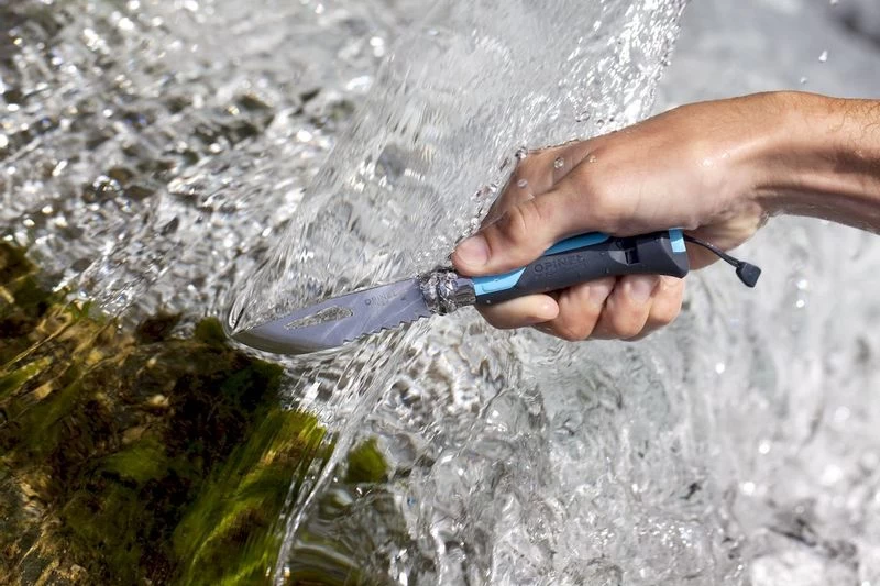 Ook heeft de Opinel N°08 Outdoor een fluit, waarmee je tot wel 110 decibel kunt fluiten. Dit kan erg handig zijn wanneer je iemand wil waarschuwen of om hulp wilt roepen.