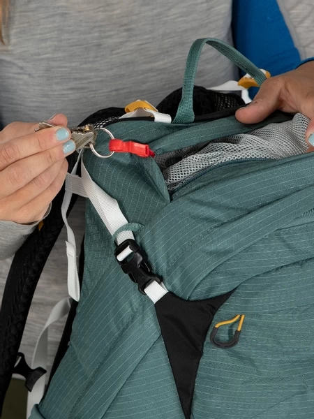 De Osprey Sirrus schouderbanden en heupbanden zijn gemaakt van ventilatiefoam voor comfort. Ook is de rugzak uitgerust met een geïntegreerde regenhoes. Deze haal je makkelijk tevoorschijn op regenachtige dagen als extra bescherming. Tijdens het hiken hoef je overigens niet uit te drogen want er is ruimte voor een waterzak waarvan de drinkslang via de achterkant van de rugzak bij je mond kan komen. Heb je wandelstokken mee maar gebruik je ze even niet? Je maakt ze makkelijk vast aan de zijkant van je rugzak met de hiervoor ontworpen lusjes. Hetzelfde geld voor een ijsbijl, voor als je de kou op gaat zoeken.